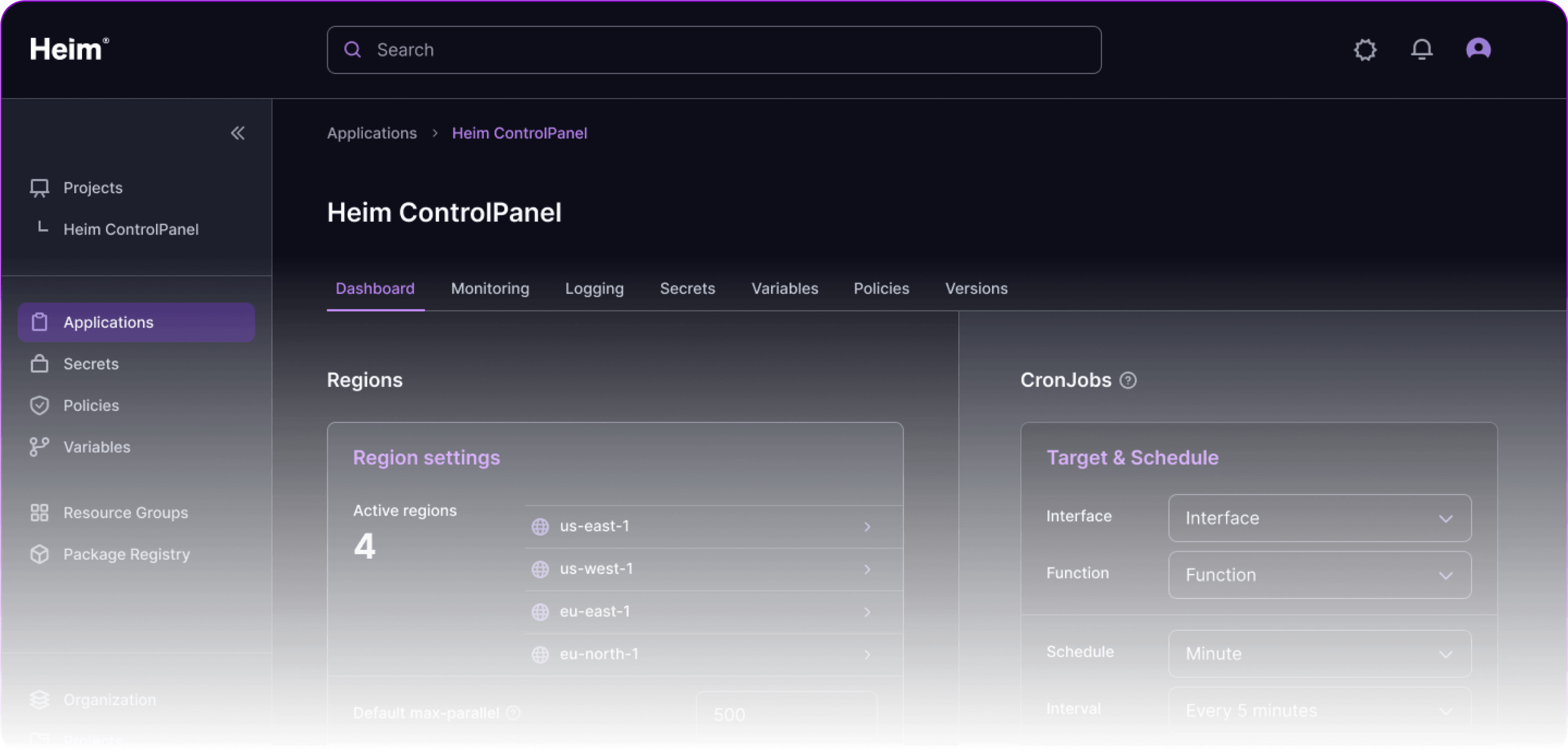 Heim scales your cloud applications effortlessly with dynamic scaling and load balancing. Automatically adjusting resources based on demand, it ensures optimal performance and high availability, future proofing your business for growth without major code rewrites.